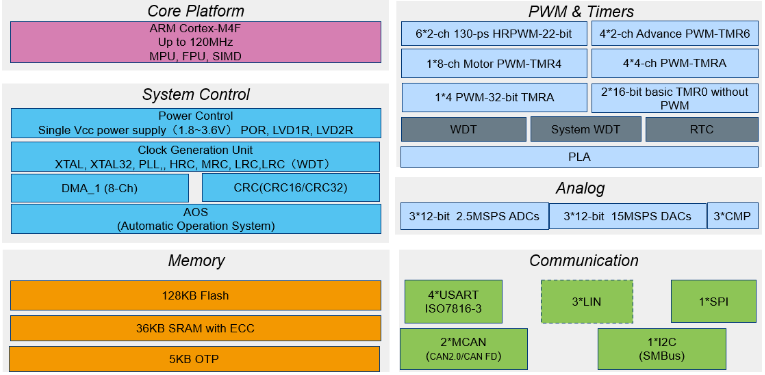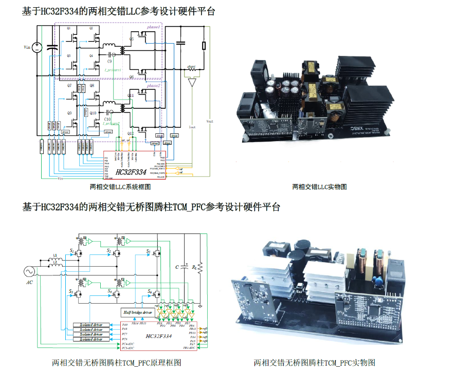 - 120MHz Arm Cortex M4F内核, 集成FPU- 128kB FLASH, 36kB RAM, 5kB OTP- 6*2路130-ps高精度PWM, 36路普通PWM- HRPWM模块具有灵活的发波功能, 满足各种数字电源方案发波和控制需求- 集成3个12-bit 2.5MSPS ADC,支持高达22路- 4*USART,1*SPI,1*I2C,3*LIN,2*CAN- 封装形式:LQFP64,LQFP48,QFN48,QFN32更多产品特性信息,请参考官网HC32F334产品特点介绍在充分考虑了不同电源拓扑的个性化发波需求,并结合以头部客户为代表的业内专家反馈的基础上,HC32F334产品针对电源应用做了不少功能优化。为加快客户的设计和上市时间,公司基于HC32F334产品现已发布光伏微逆和数字电源LLC等多款电源行业应用方案,期待您一起加入探索HC32F334的优化功能。相应参考方案和典型实验结果请参考官网电源应用版块。