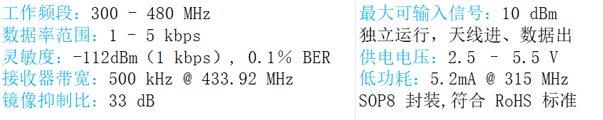 315/433MHz ASK/OOK射频接收芯片