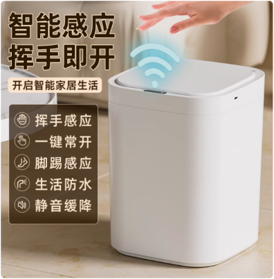 2、方案中含有自动感应模式,可以通过挥手或者脚踢来开启或者关闭垃圾桶盖子,25cm的