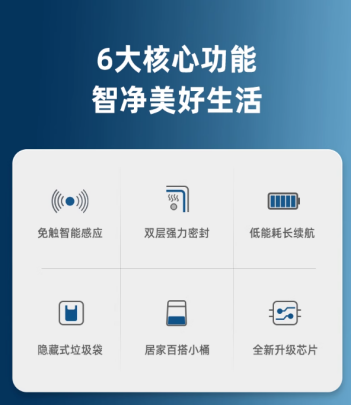 就是盖子可以通过感应器来开和关,不用手动和脚踩,对于用户来说比较方便。