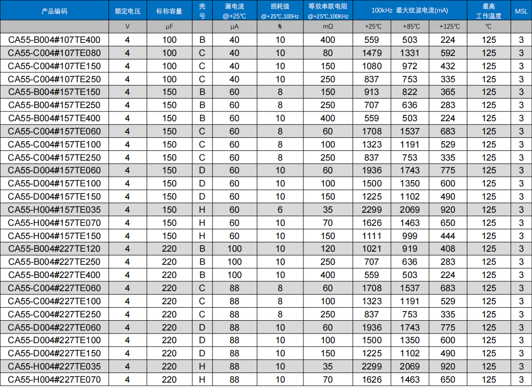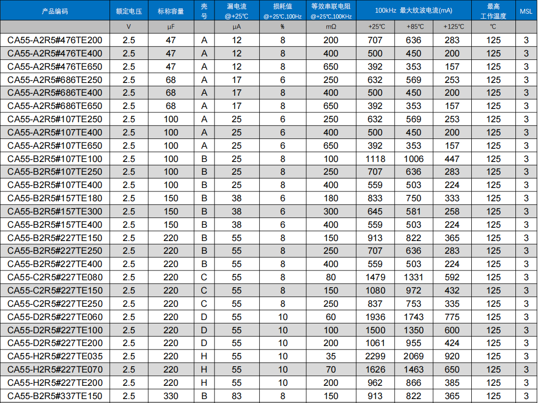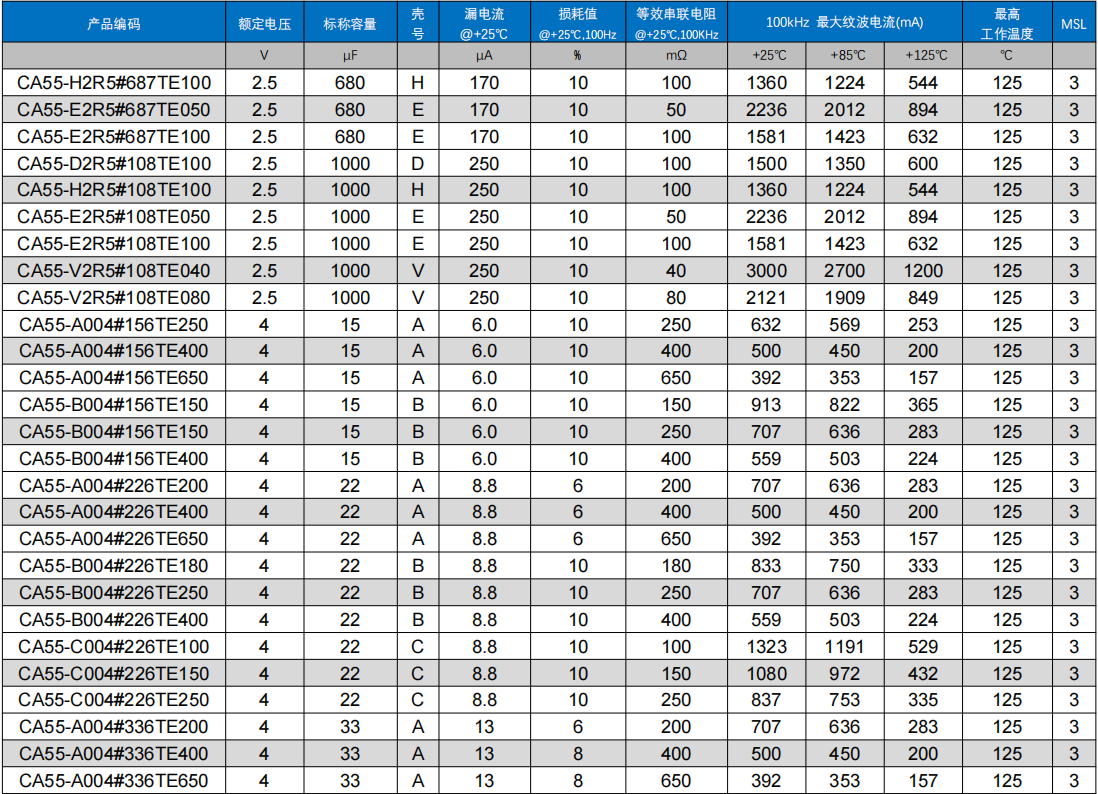 ●该产品阳极采用一氧化铌为阳极基材,对开关电源电路直流浪涌冲击呈钝感;